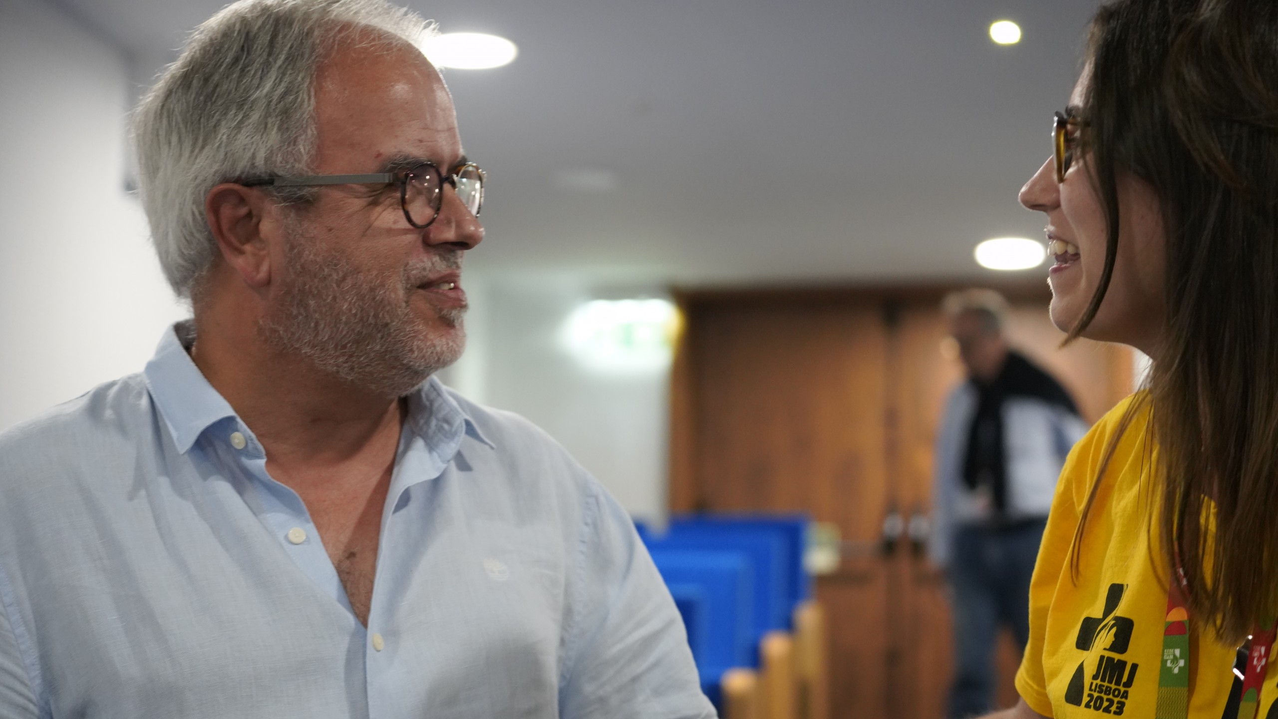 José Manuel Pureza with a Portuguese student at the Lisbon DIALOP workshop on communication in times of war 2023.